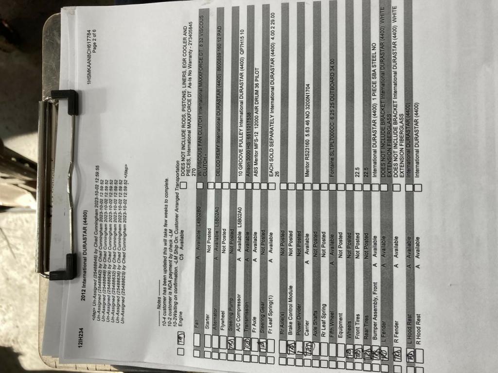All Parts Available From This 2012 International DURASTAR (4400)