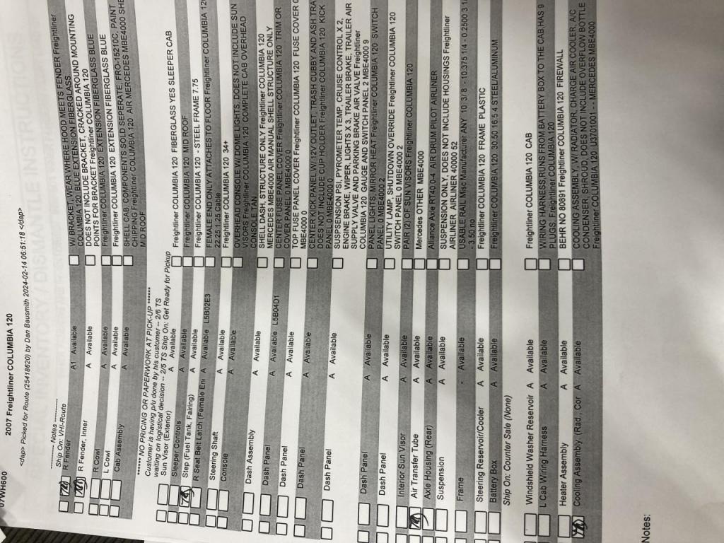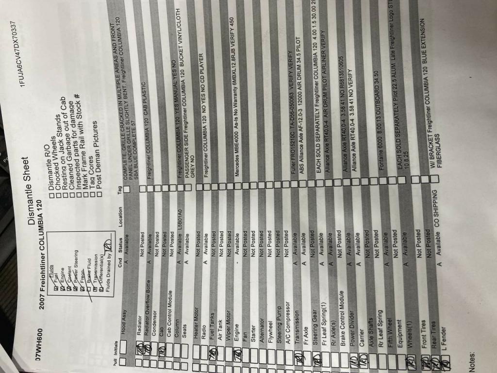 All Parts Available From This 2007 Freightliner COLUMBIA 120