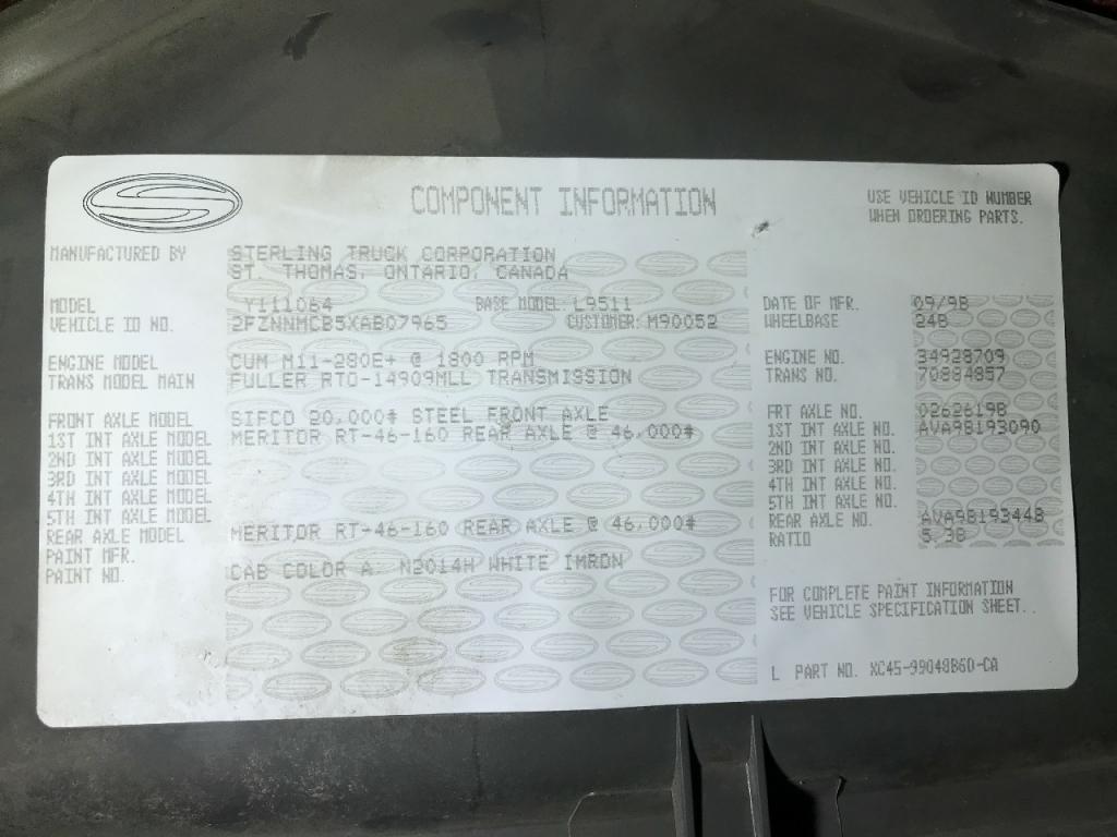 All Parts Available From This 1999 Sterling L9511