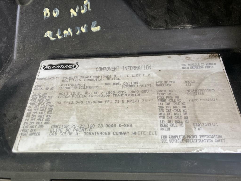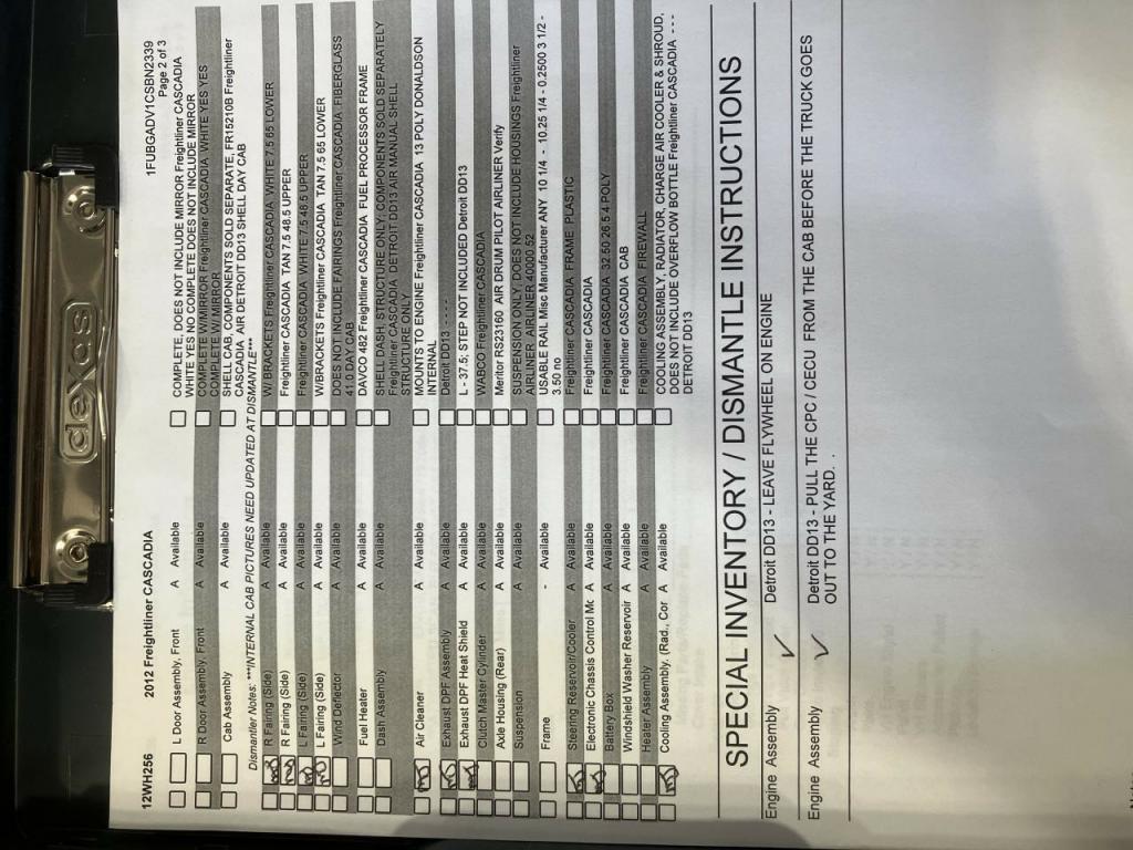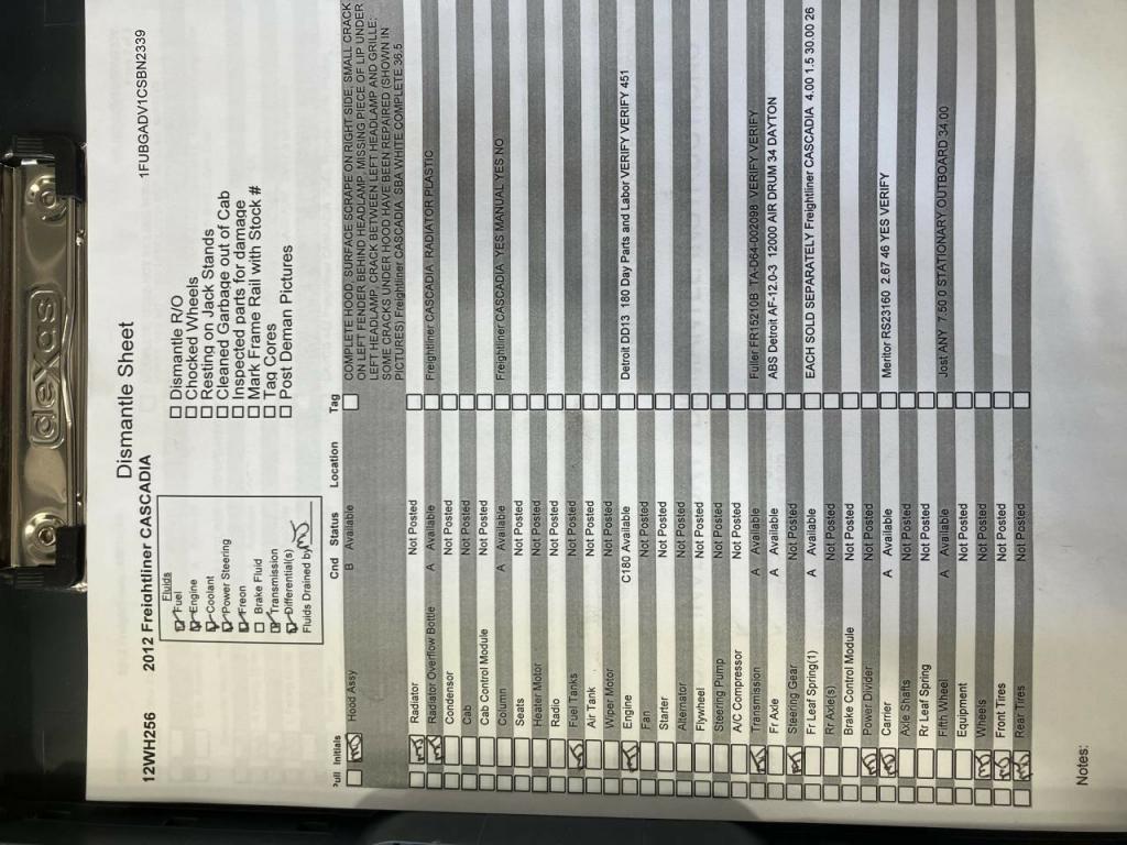 All Parts Available From This 2012 Freightliner CASCADIA