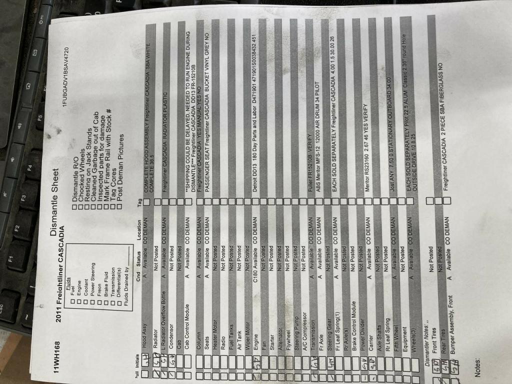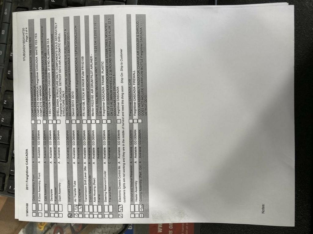 All Parts Available From This 2011 Freightliner CASCADIA