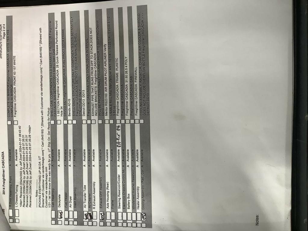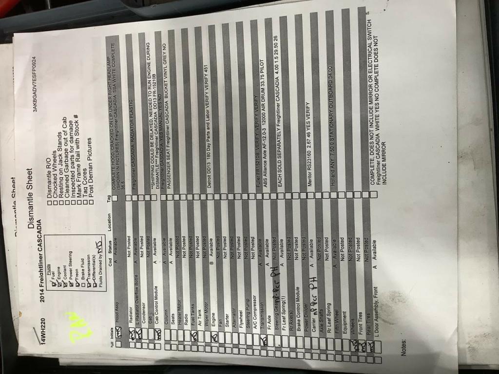 All Parts Available From This 2014 Freightliner CASCADIA