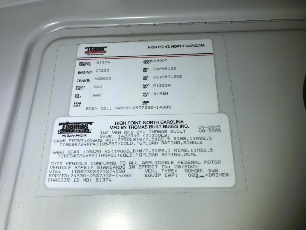 All Parts Available From This 2007 Thomas SAF-T-LINER MVP-EF