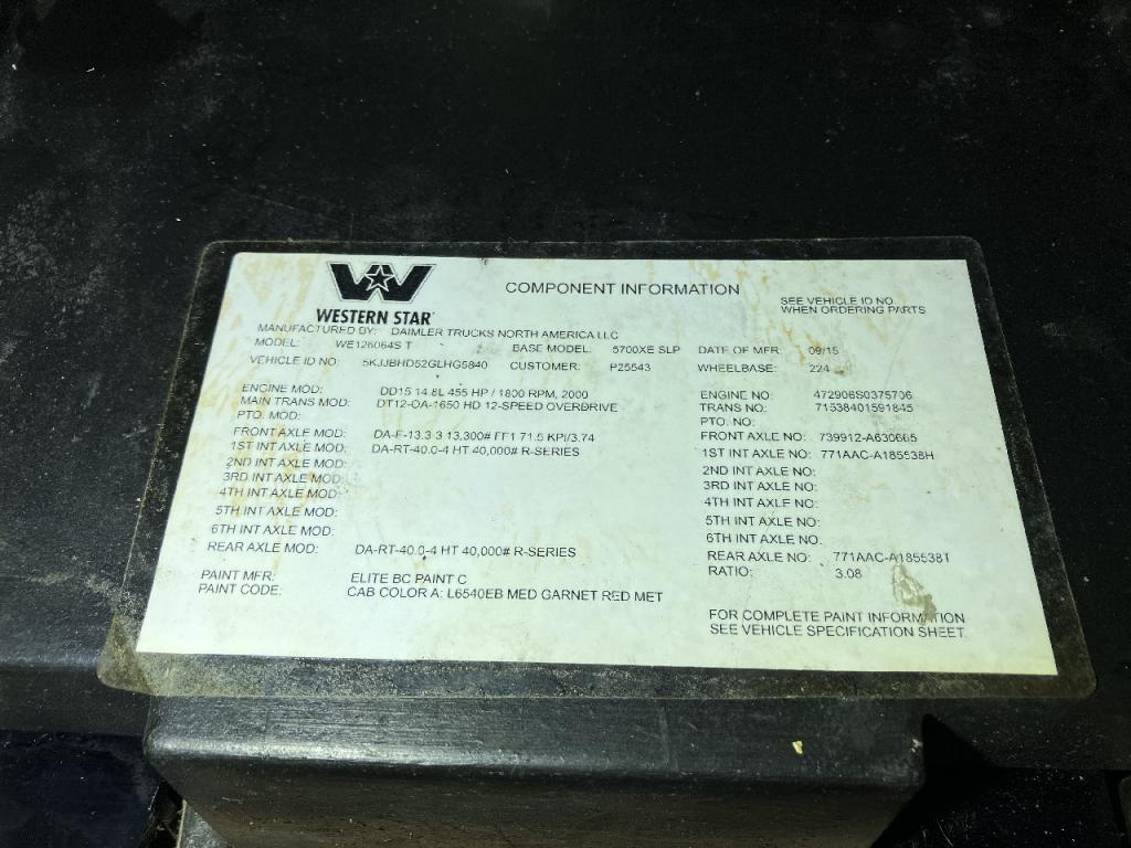 All Parts Available From This 2016 Western Star Trucks 5700