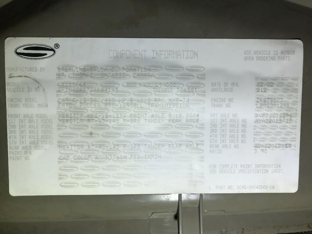 All Parts Available From This 2002 Sterling L9511