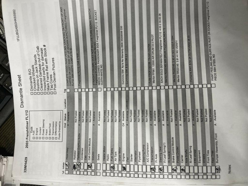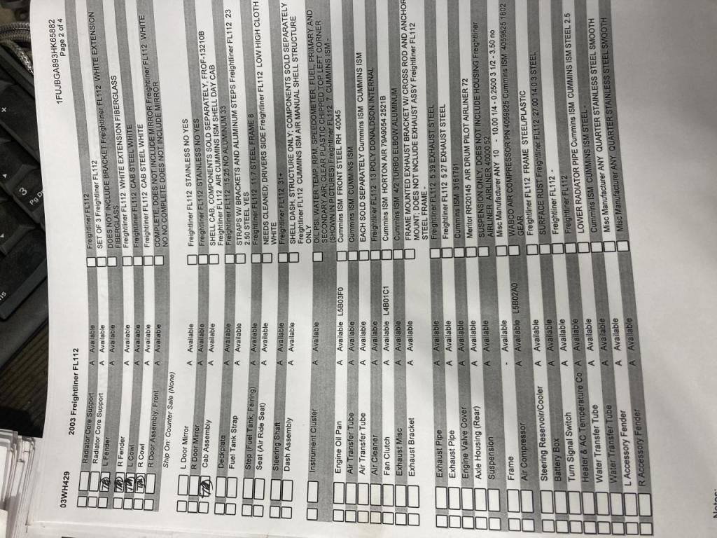 All Parts Available From This 2003 Freightliner FL112
