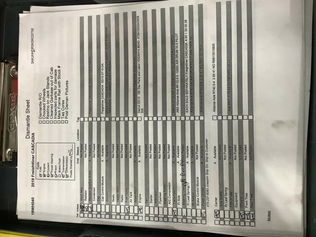 All Parts Available From This 2019 Freightliner CASCADIA