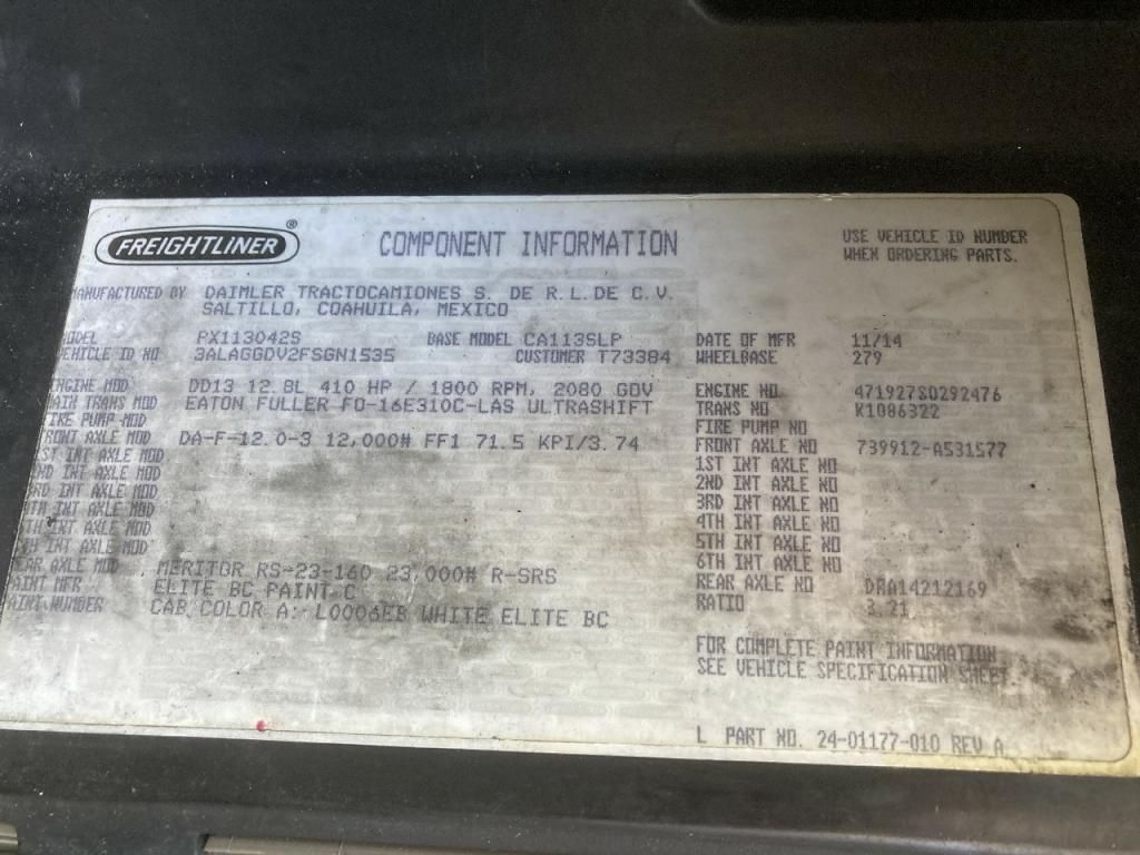 All Parts Available From This 2015 Freightliner CASCADIA