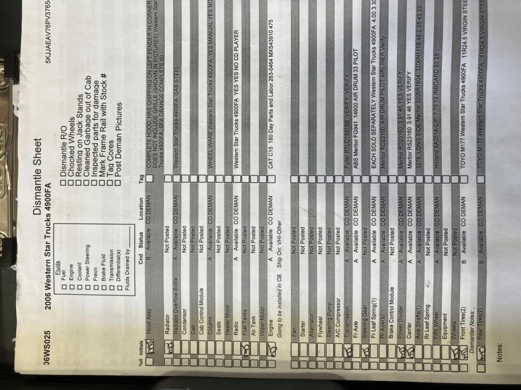 All Parts Available From This 2006 Western Star Trucks 4900FA