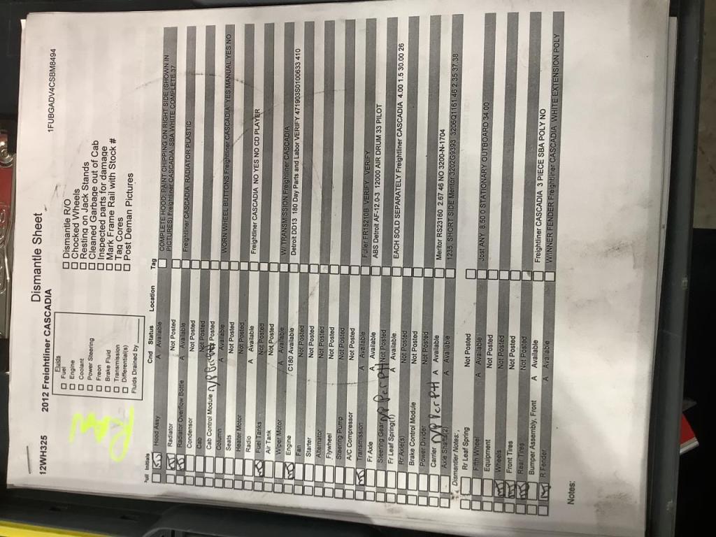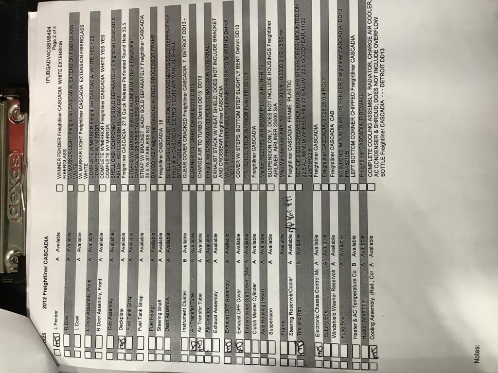 All Parts Available From This 2012 Freightliner CASCADIA