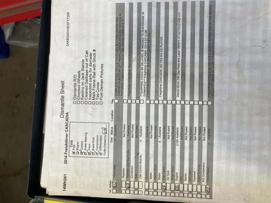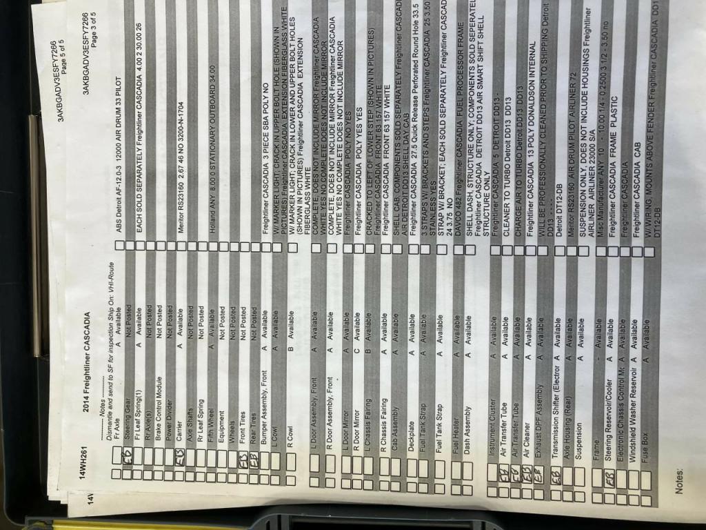 All Parts Available From This 2014 Freightliner CASCADIA