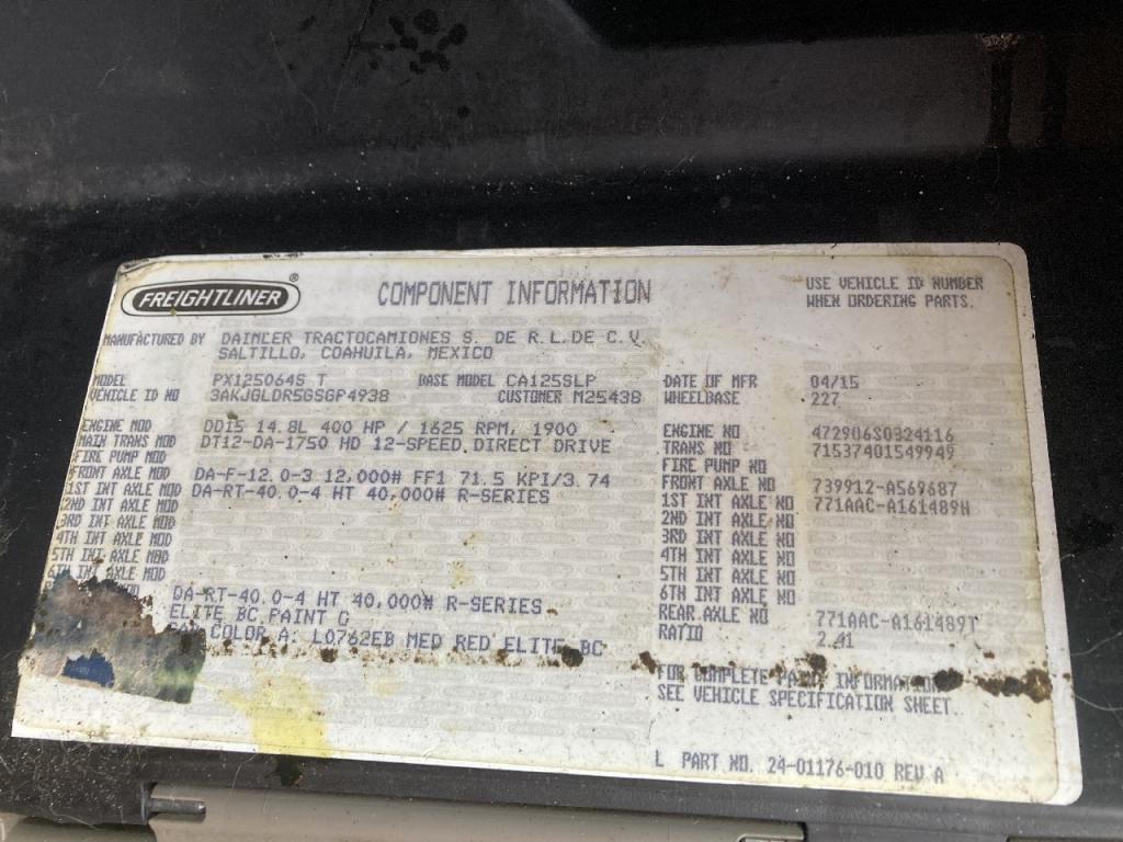 All Parts Available From This 2016 Freightliner CASCADIA