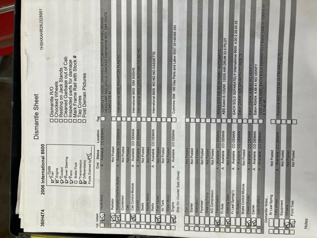 All Parts Available From This 2006 International 8600