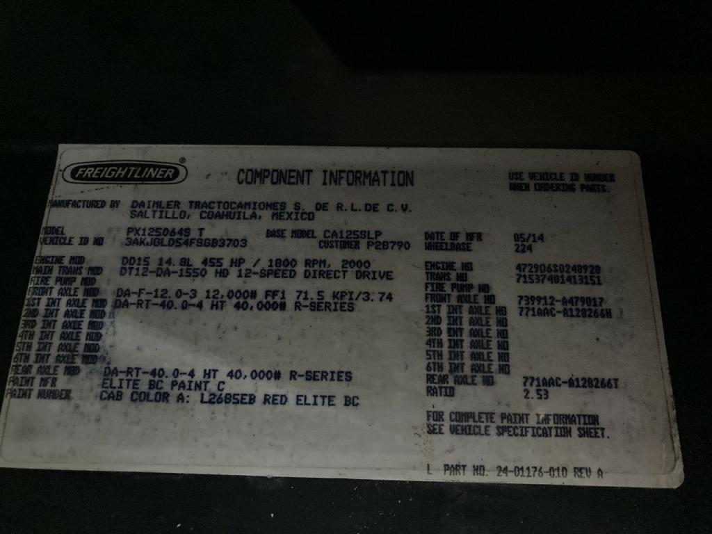 All Parts Available From This 2015 Freightliner CASCADIA