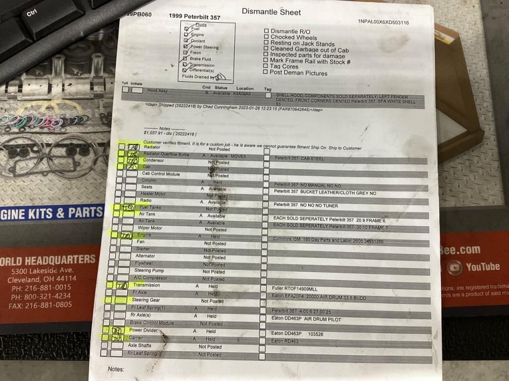 All Parts Available From This 1999 Peterbilt 357