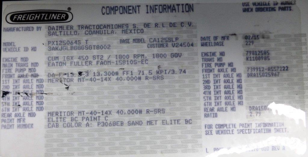 All Parts Available From This 2016 FREIGHTLINER CASCADIA 125