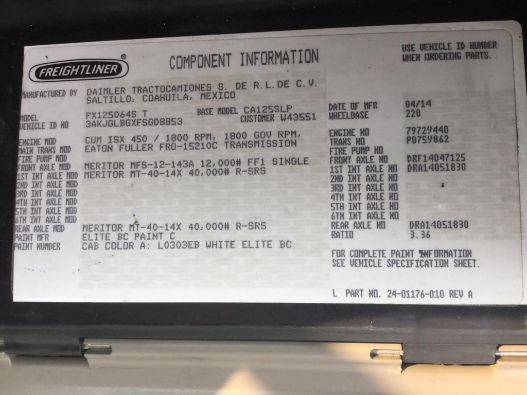 ALL PARTS AVAILABLE FROM THIS 2015 FREIGHTLINER CASCADIA 125