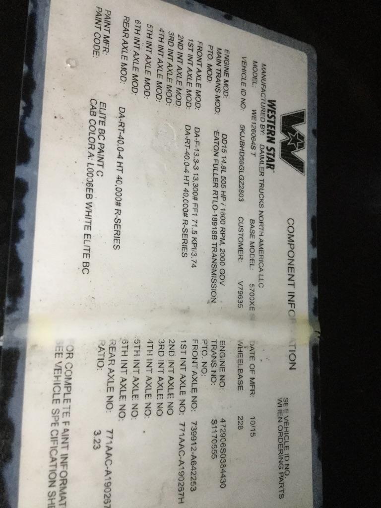 All Parts Available From This 2016 WESTERN STAR 5700XE