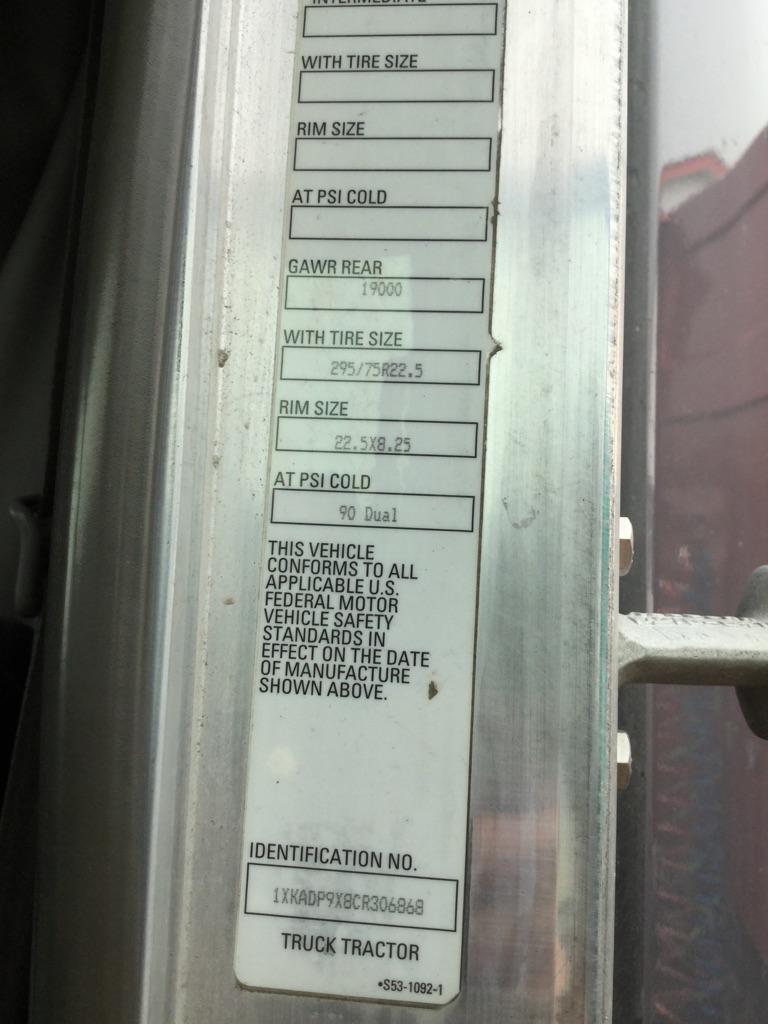 VIN:1XKADP9X8CR306868