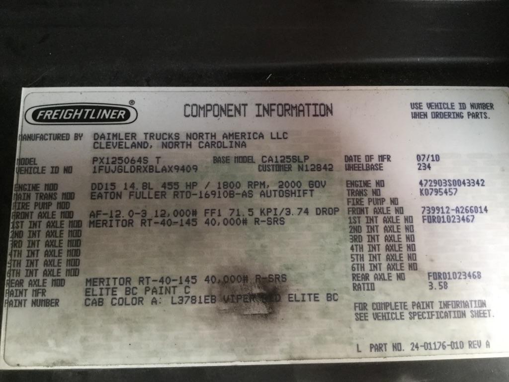 All Parts Available From This 2011 FREIGHTLINER CASCADIA 125