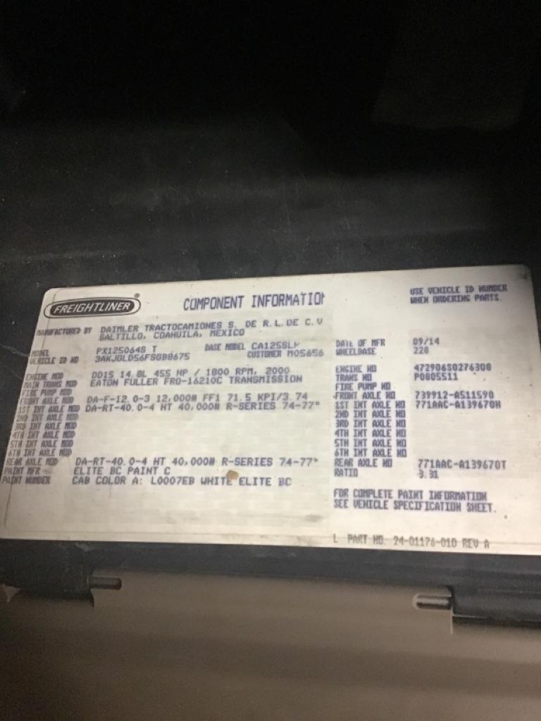 All Parts Available From This 2015 FREIGHTLINER CASCADIA 125