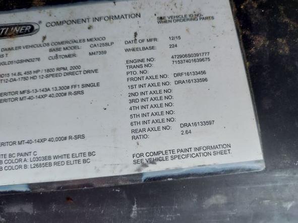 All Parts Available From This 2016 FREIGHTLINER CASCADIA 125