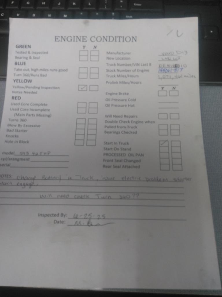 ENGINE ASSEMBLY VOLVO - D13J EPA 13 (MP8) $5500.24