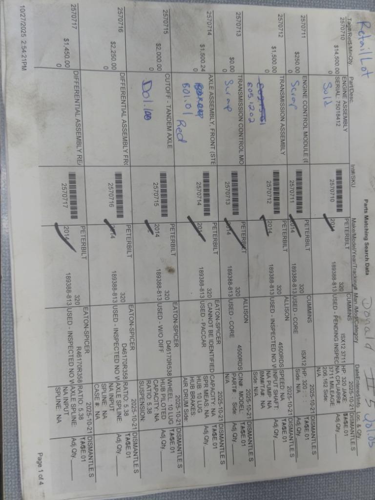 All Parts Available From This 2014 PETERBILT 320
