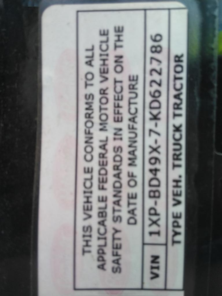 VIN:1XPBD49X7KD622786