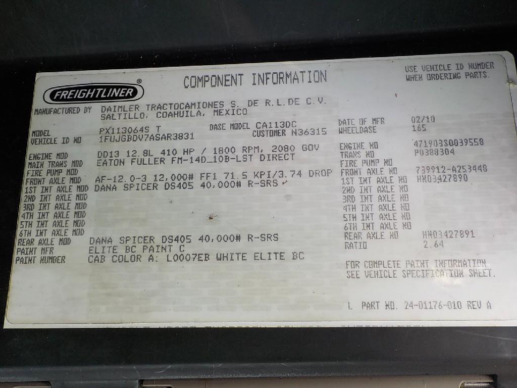 All Parts Available From This 2010 FREIGHTLINER CASCADIA 113