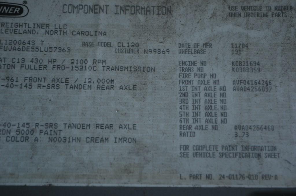 All Parts Available From This 2005 FREIGHTLINER COLUMBIA 120