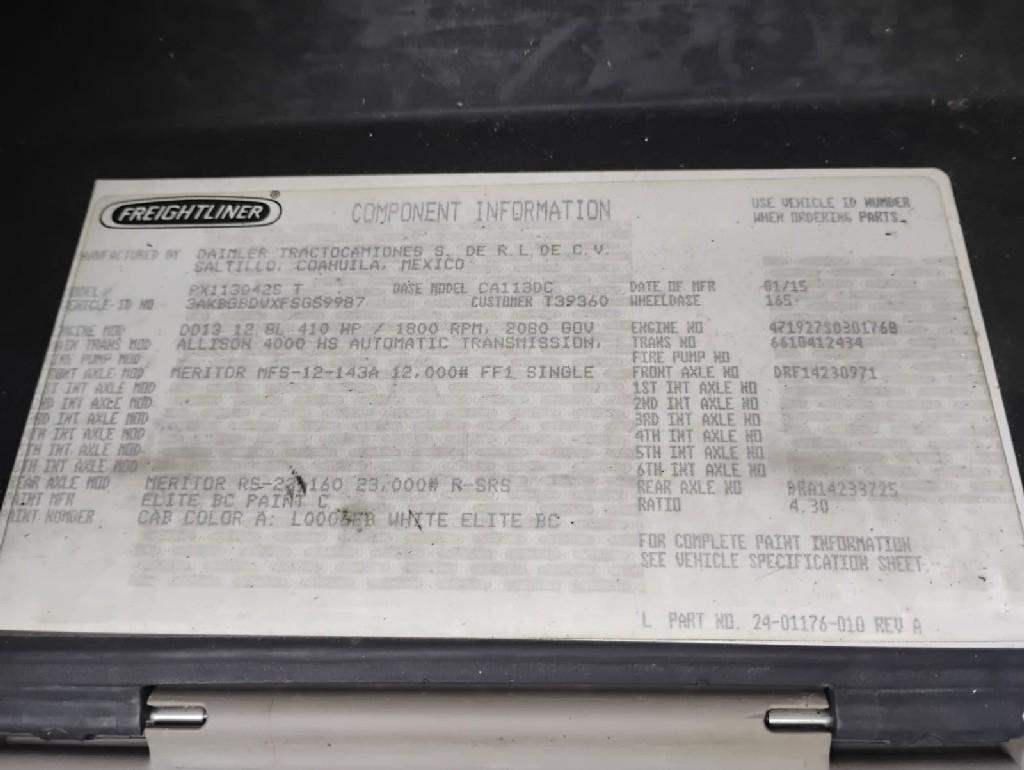 All Parts Available From This 2015 FREIGHTLINER Cascadia