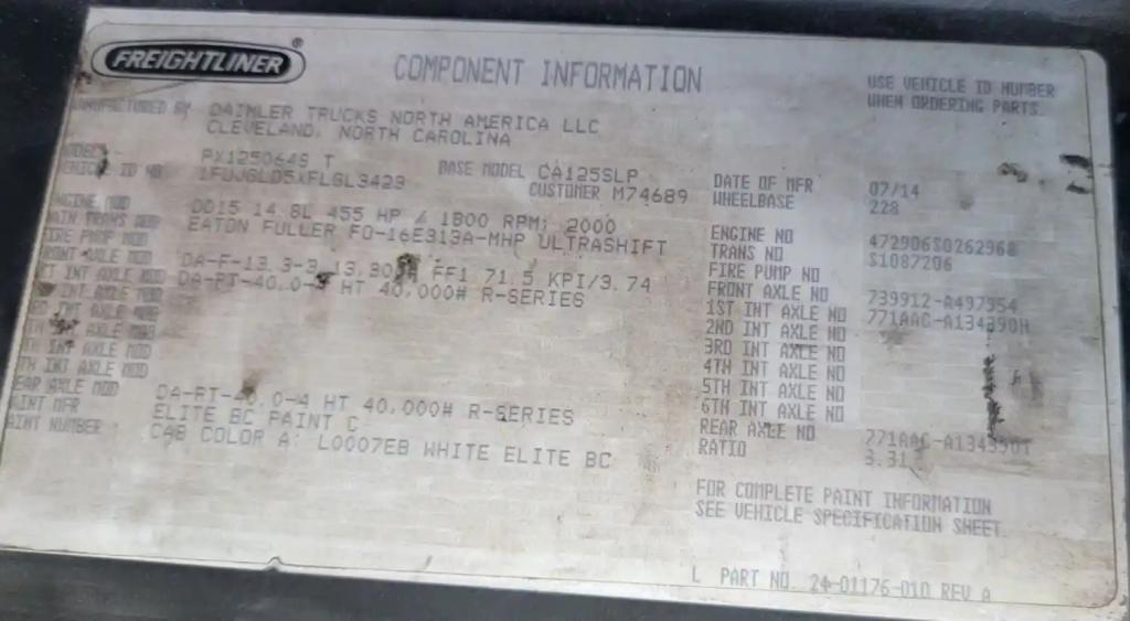 All Parts Available From This 2015 FREIGHTLINER Cascadia 125