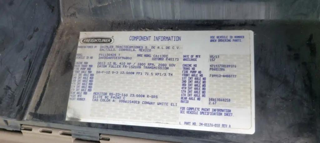All Parts Available From This 2014 FREIGHTLINER Cascadia 113