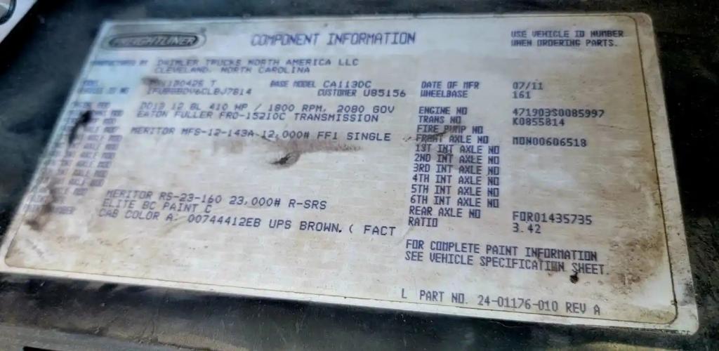 All Parts Available From This 2012 FREIGHTLINER Cascadia 113