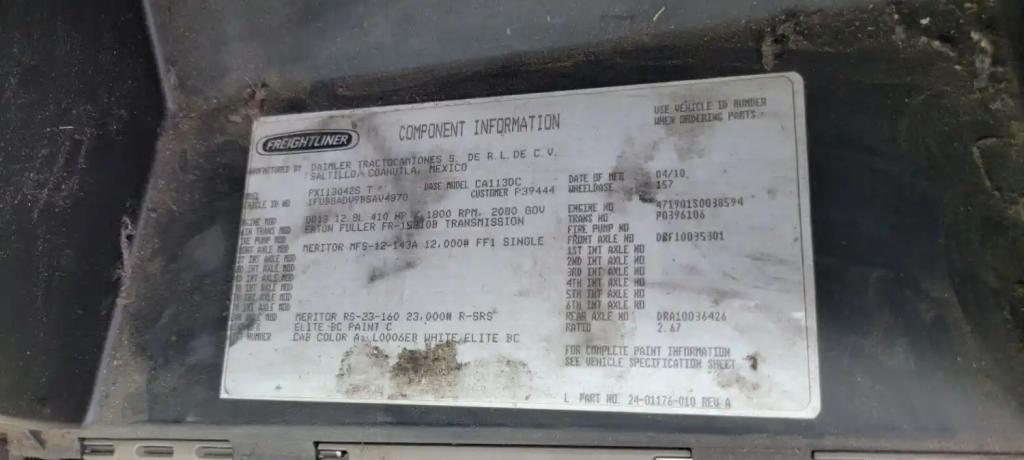 All Parts Available From This 2011 FREIGHTLINER Cascadia 113