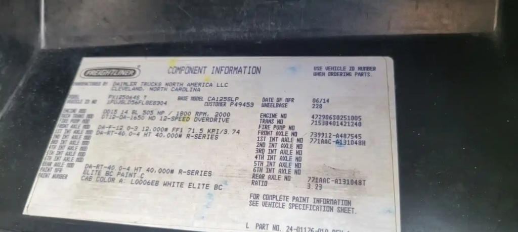 All Parts Available From This 2015 FREIGHTLINER Cascadia 125
