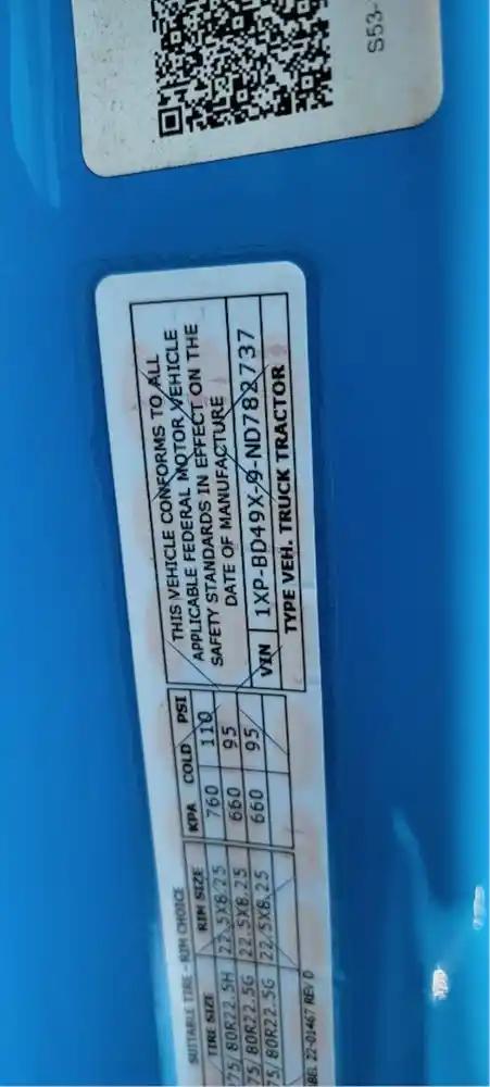 VIN:1XPBD49X9ND782737