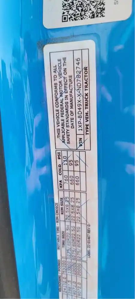 VIN:1XPBD49XXND782746
