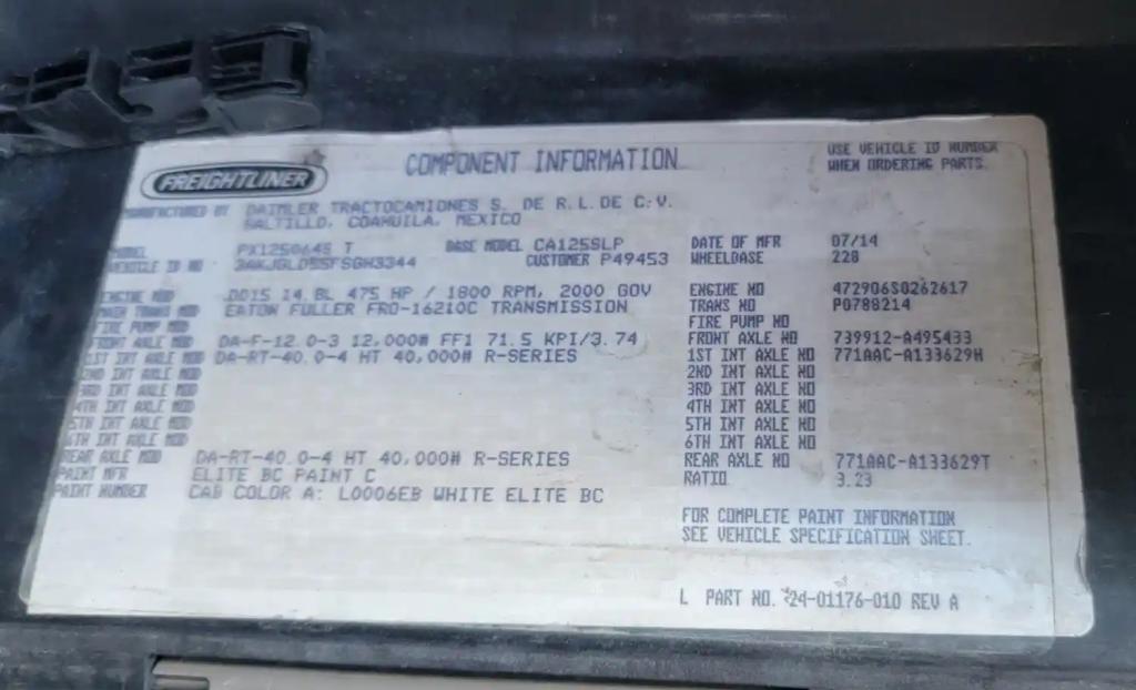 All Parts Available From This 2015 FREIGHTLINER Cascadia 125