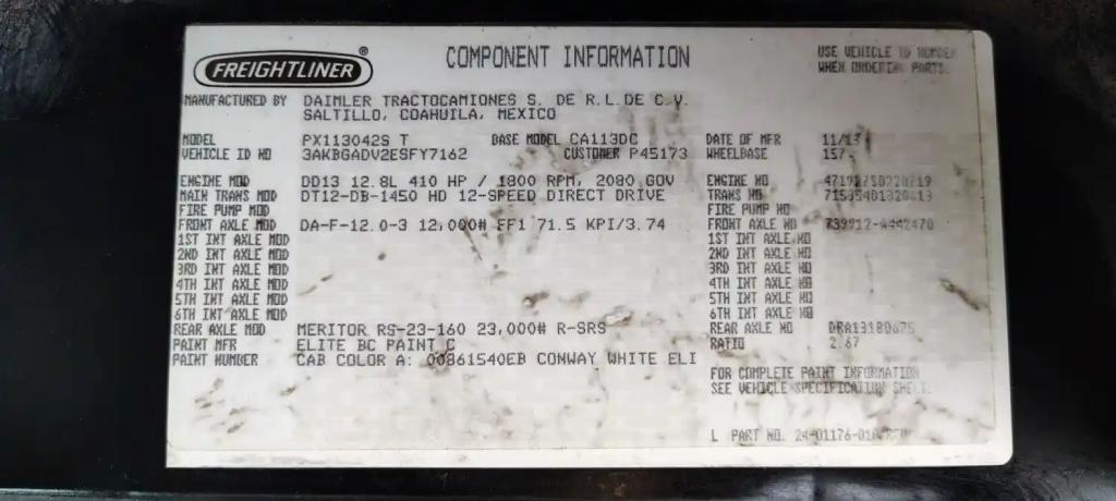 All Parts Available From This 2014 FREIGHTLINER Cascadia 113