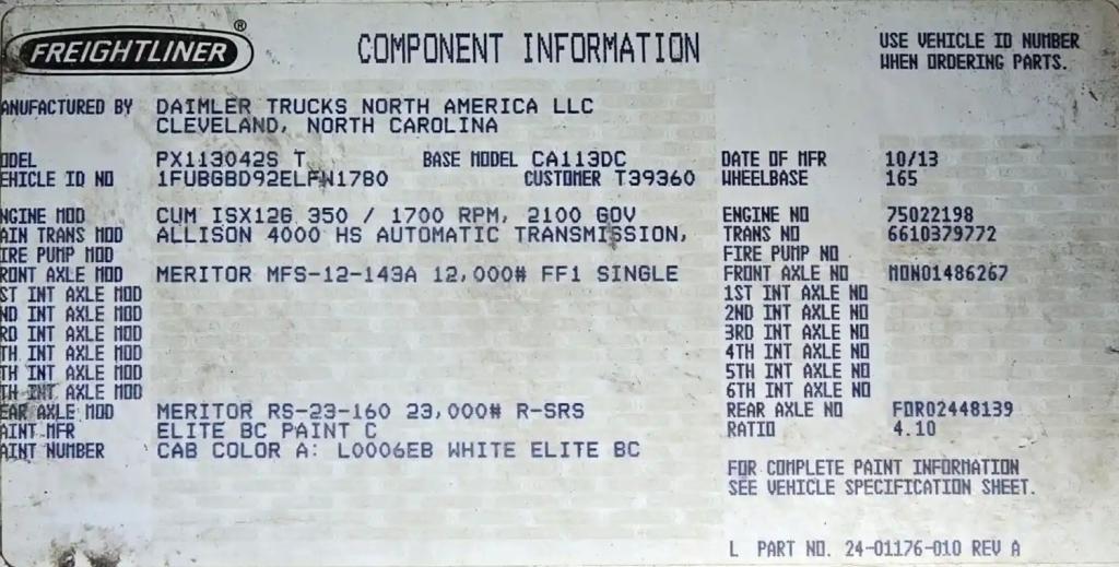 All Parts Available From This 2014 FREIGHTLINER Cascadia 113