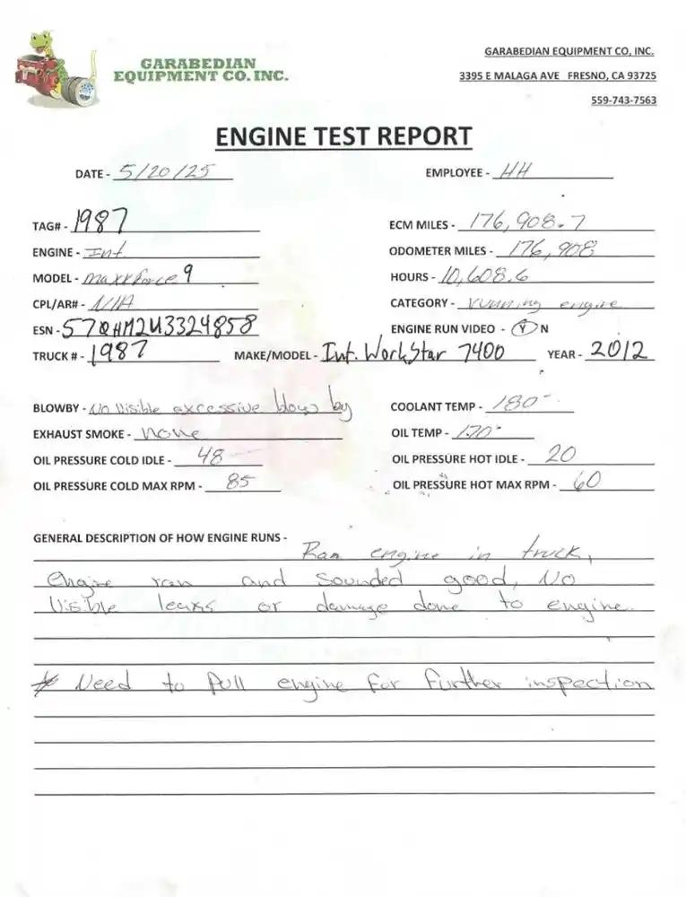 All Parts Available From This 2012 INTERNATIONAL WorkStar 7400