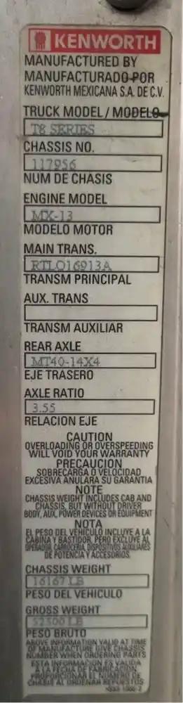 All Parts Available From This 2016 KENWORTH T800