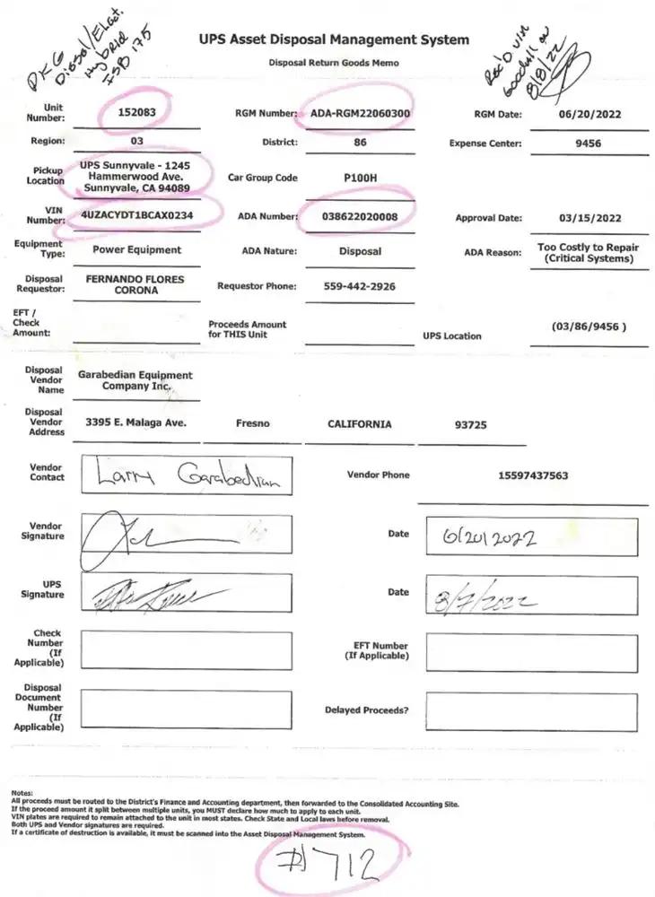 Vehicle Tracking Number:UPS-152083