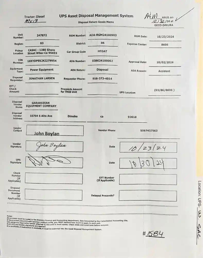 Vehicle Tracking Number:UPS-247872