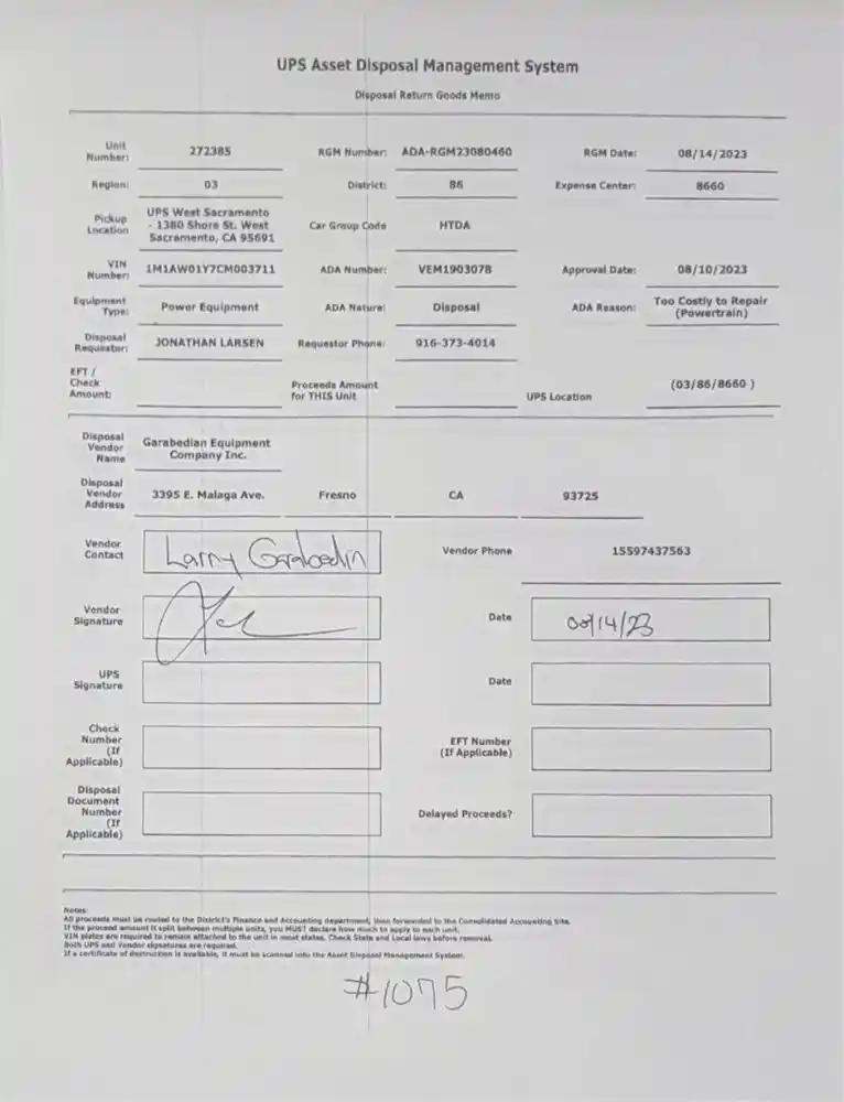 Vehicle Tracking Number:UPS-272385