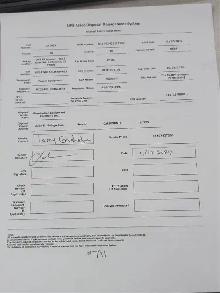 Vehicle Tracking Number:UPS-272629