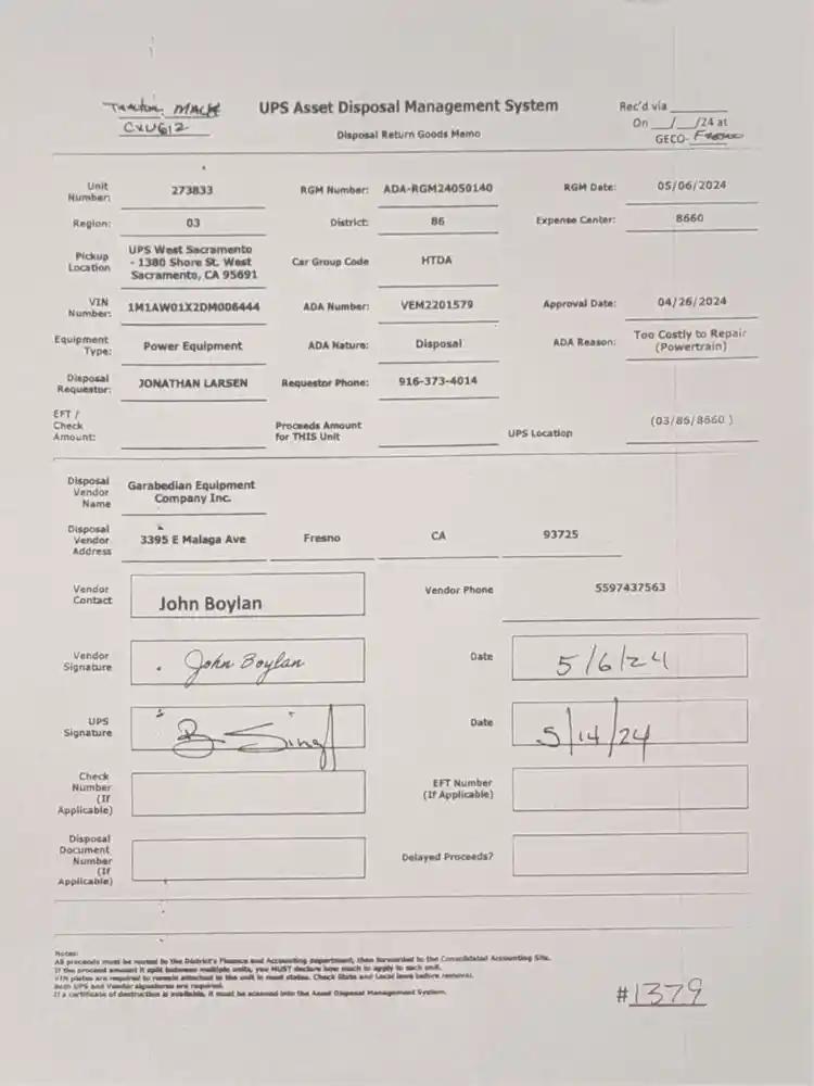 Vehicle Tracking Number:UPS-273833