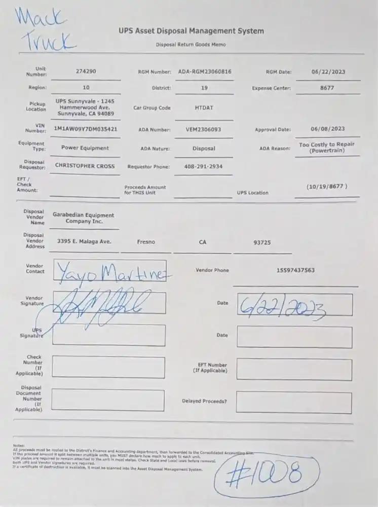 Vehicle Tracking Number:UPS-274290